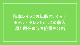 芸能トレンド秋本レイラニの年収はいくら?モデル・タレントとしての収入源と現在の立ち位置を分析 秋本レイラニの年収は500万〜1200万円前後と推定。モデル活動・テレビ出演・広告収入の内訳と今後の年収上昇ポイントを詳しく解説します。 2026.01.23芸能トレンド