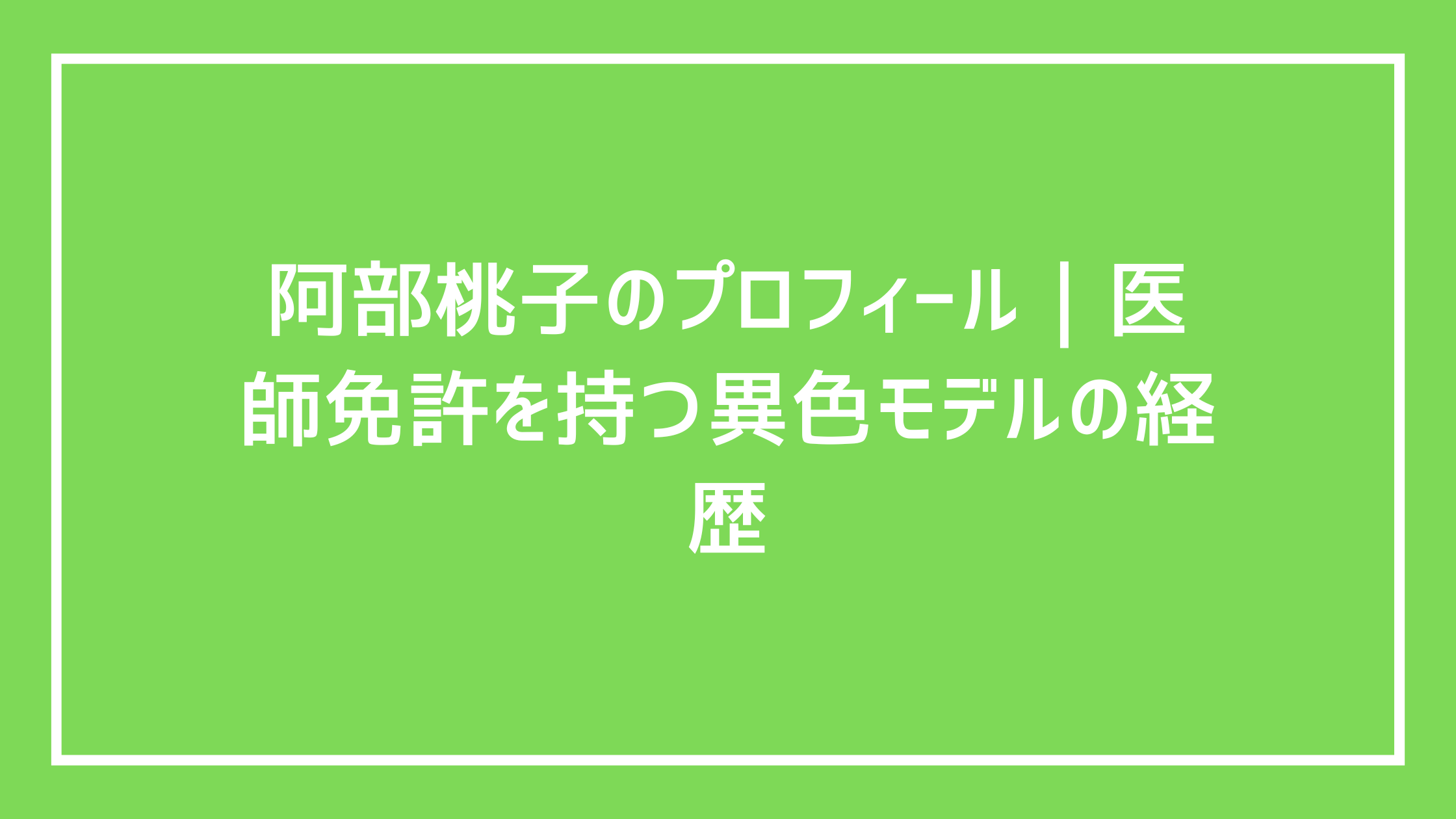 阿部桃子さんは、日本のモデル・タレントであり、医師免許を取得していることで知られています。