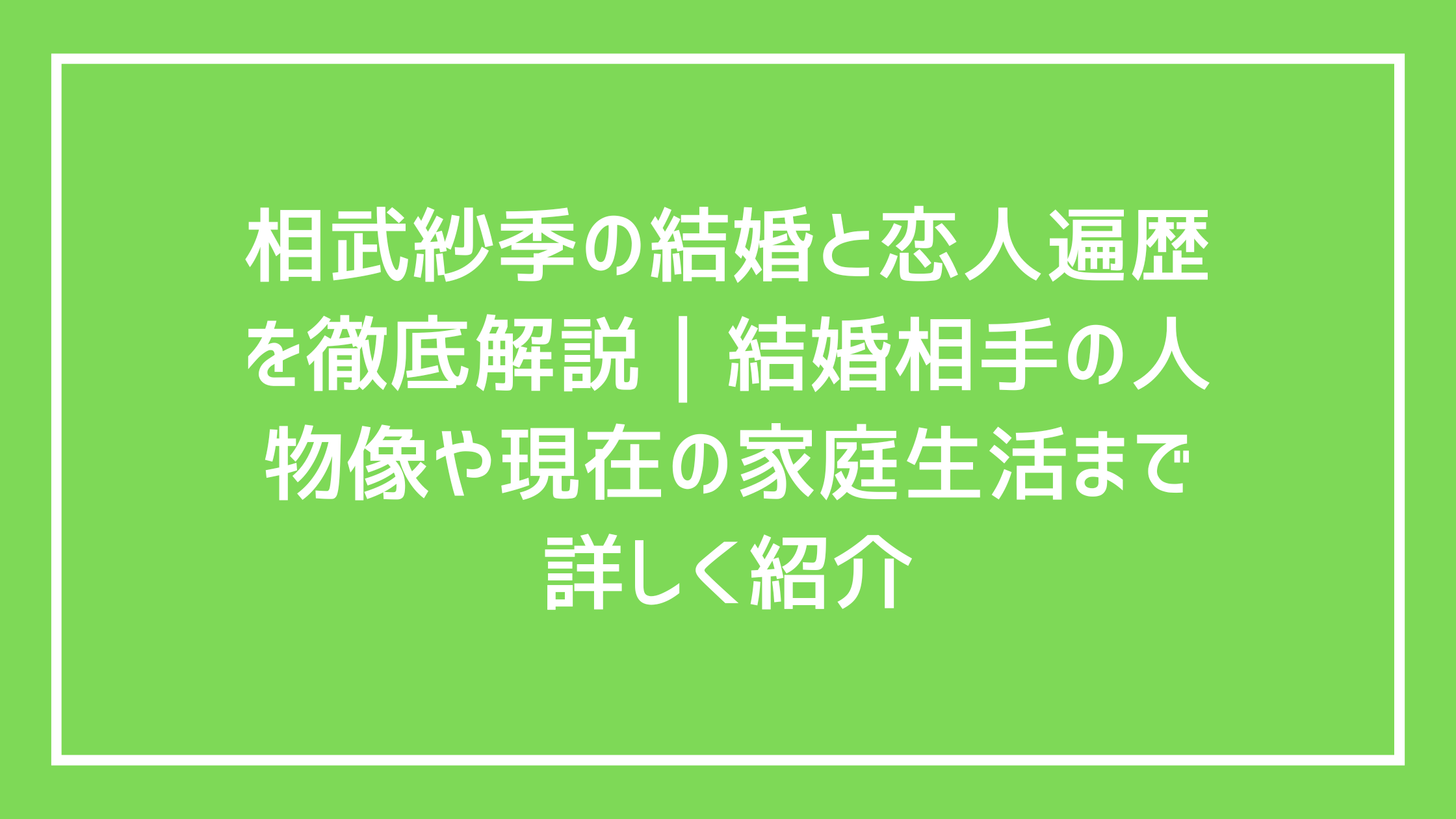女優として幅広い作品に出演し、清楚で芯のあるイメージを持つ相武紗季さん。長年第一線で活躍してきたこともあり、「結婚しているの?」「恋人は誰だった?」「現在の家庭生活は?」といったプライベートに関する関心も非常に高い人物です。