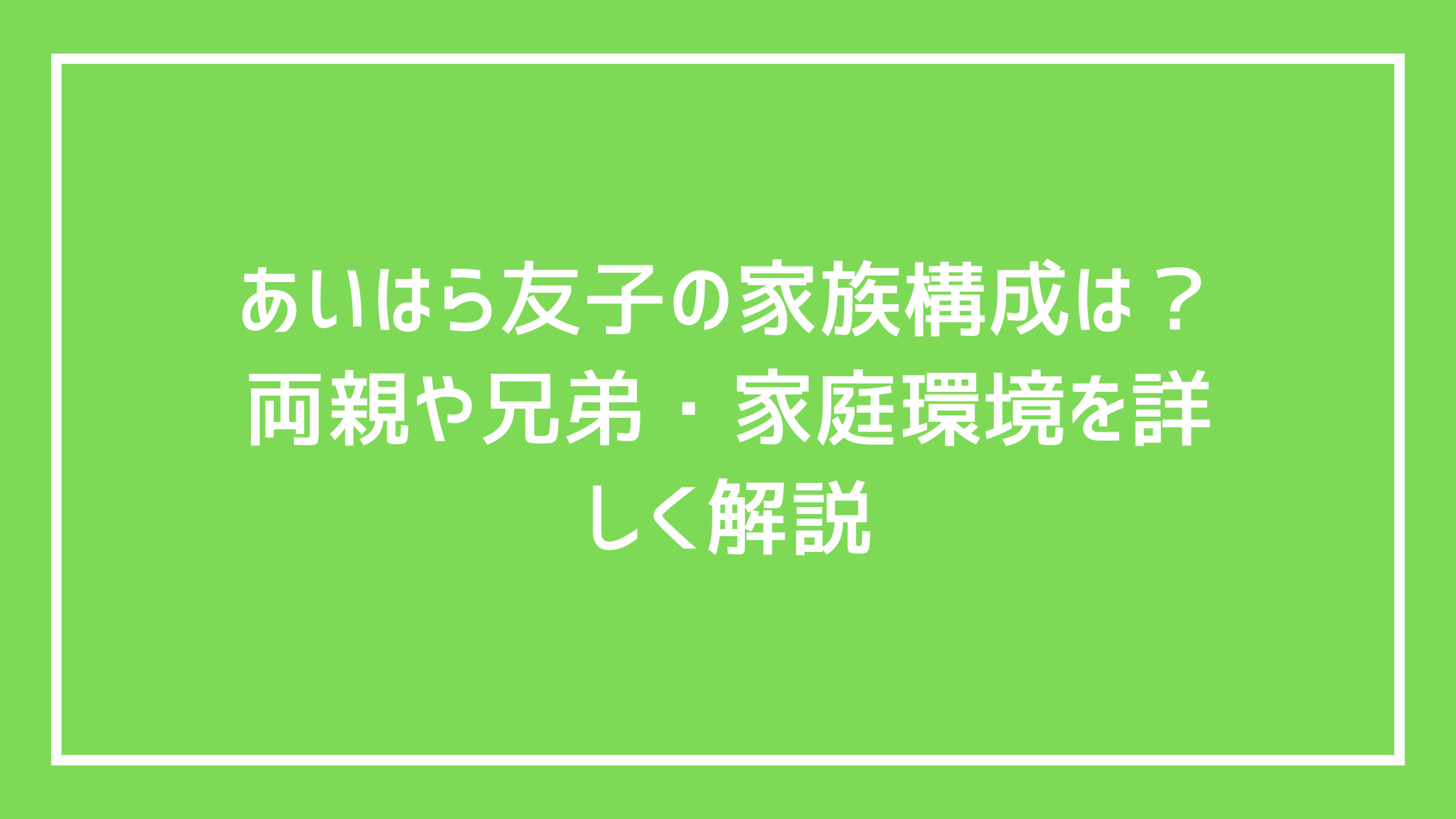 あいはら友子さんの家族構成について、詳細な人数や職業は公表されていません。芸能一家ではなく、一般家庭で育ったとされています。