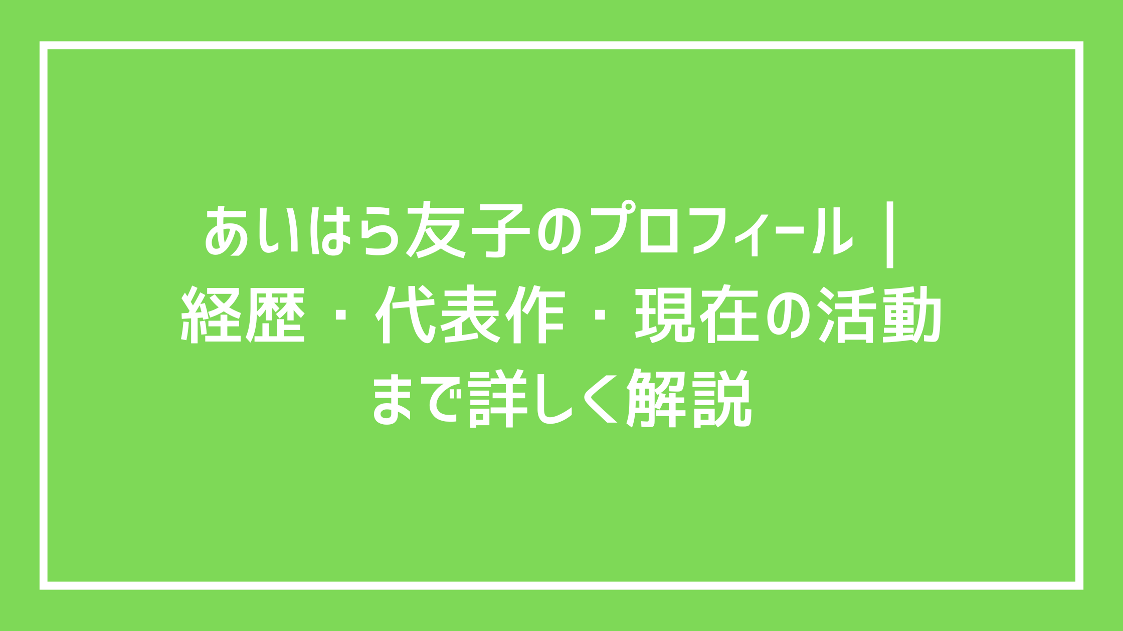 あいはら友子のプロフィール|経歴・代表作・現在の活動まで詳しく解説