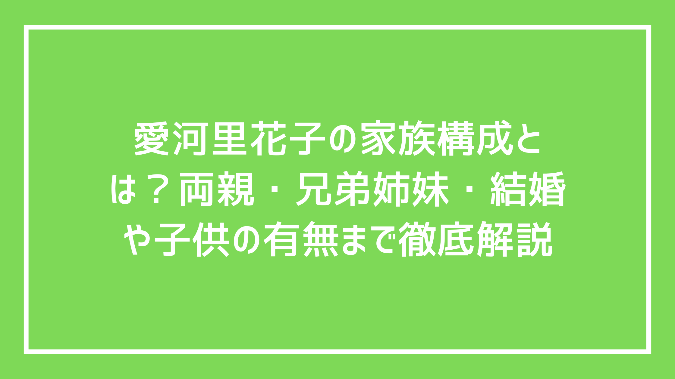 愛河里花子の家族構成とは?両親・兄弟姉妹・結婚や子供の有無まで徹底解説
