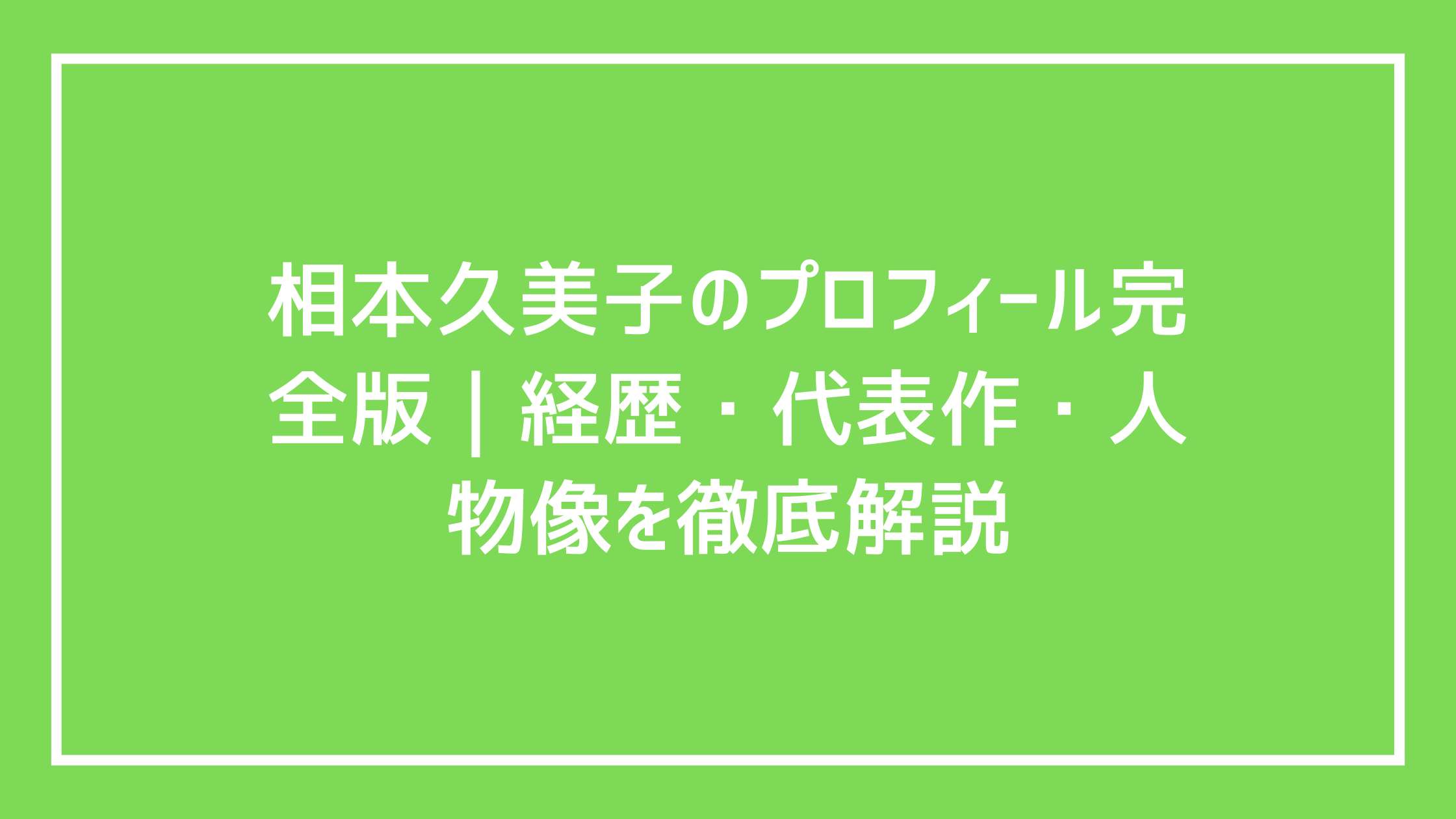 相本久美子のプロフィール完全版|経歴・代表作・人物像を徹底解説