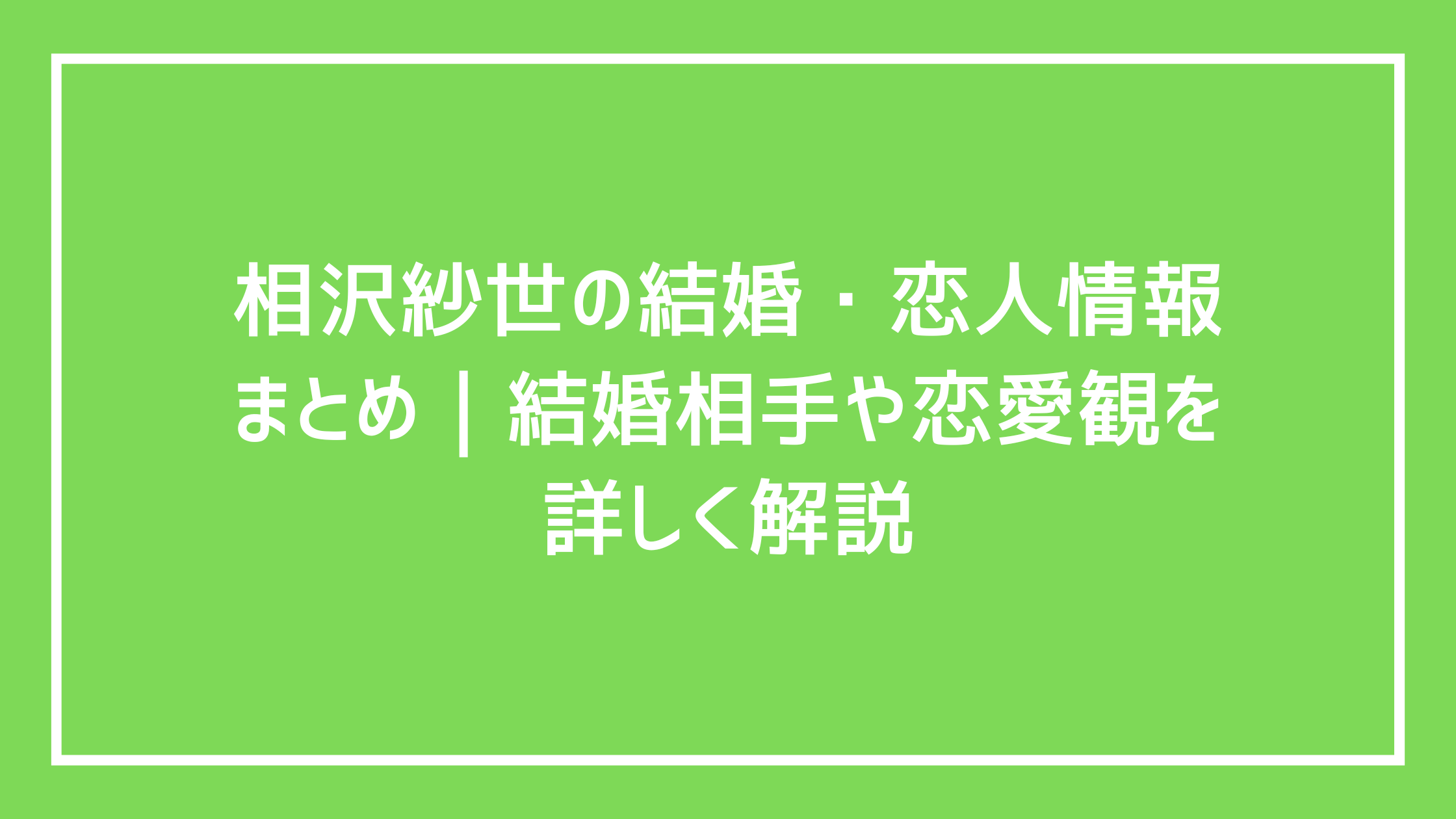 相沢紗世の結婚・恋人情報まとめ|結婚相手や恋愛観を詳しく解説