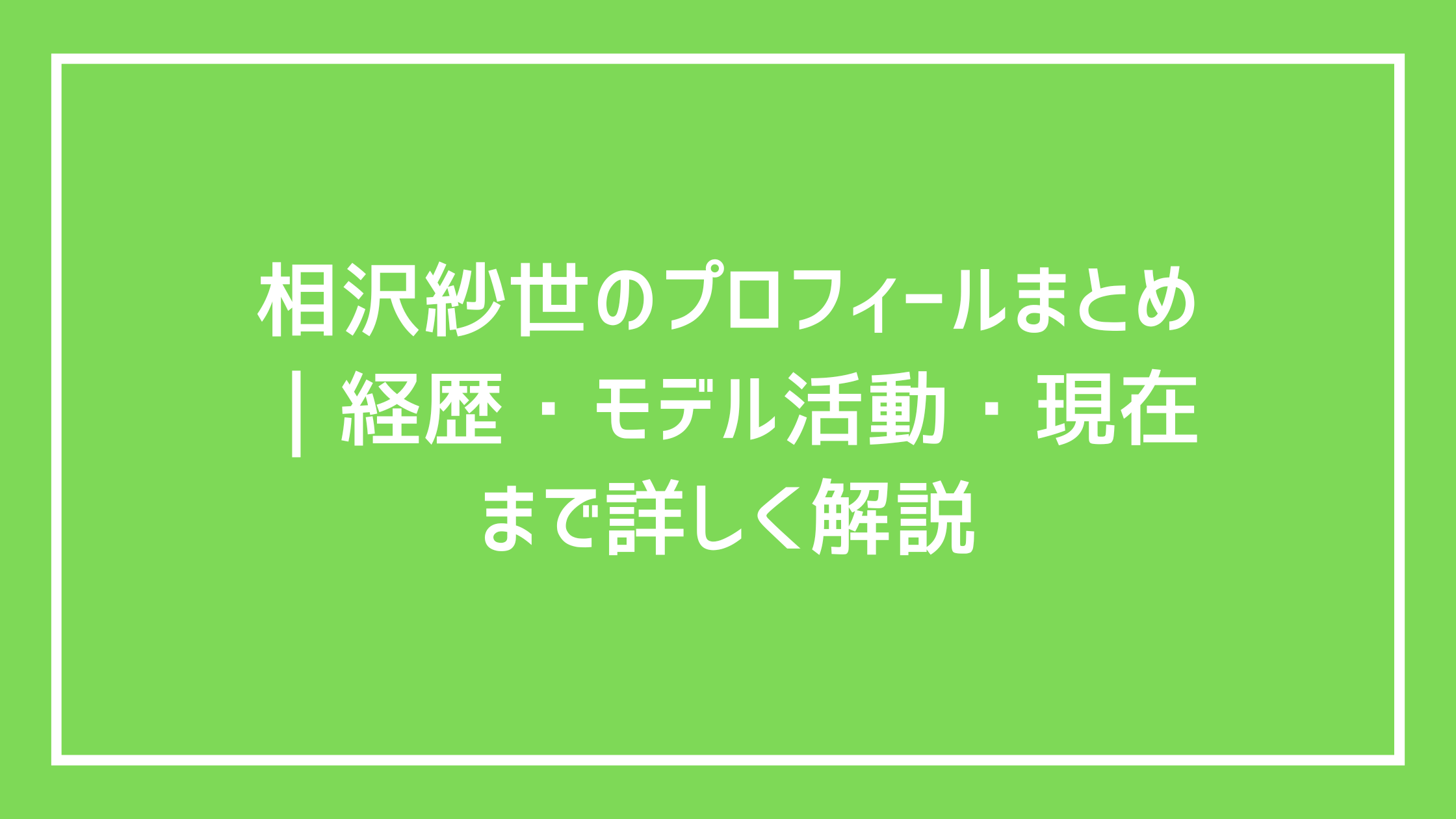 相沢紗世のプロフィールまとめ|経歴・モデル活動・現在まで詳しく解説