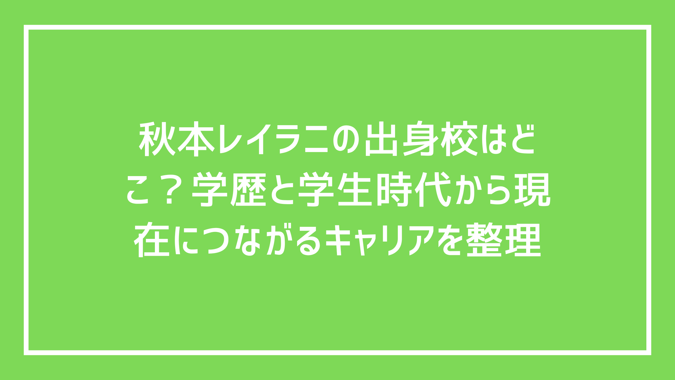 秋本レイラニの出身校はどこ?学歴と学生時代から現在につながるキャリアを整理