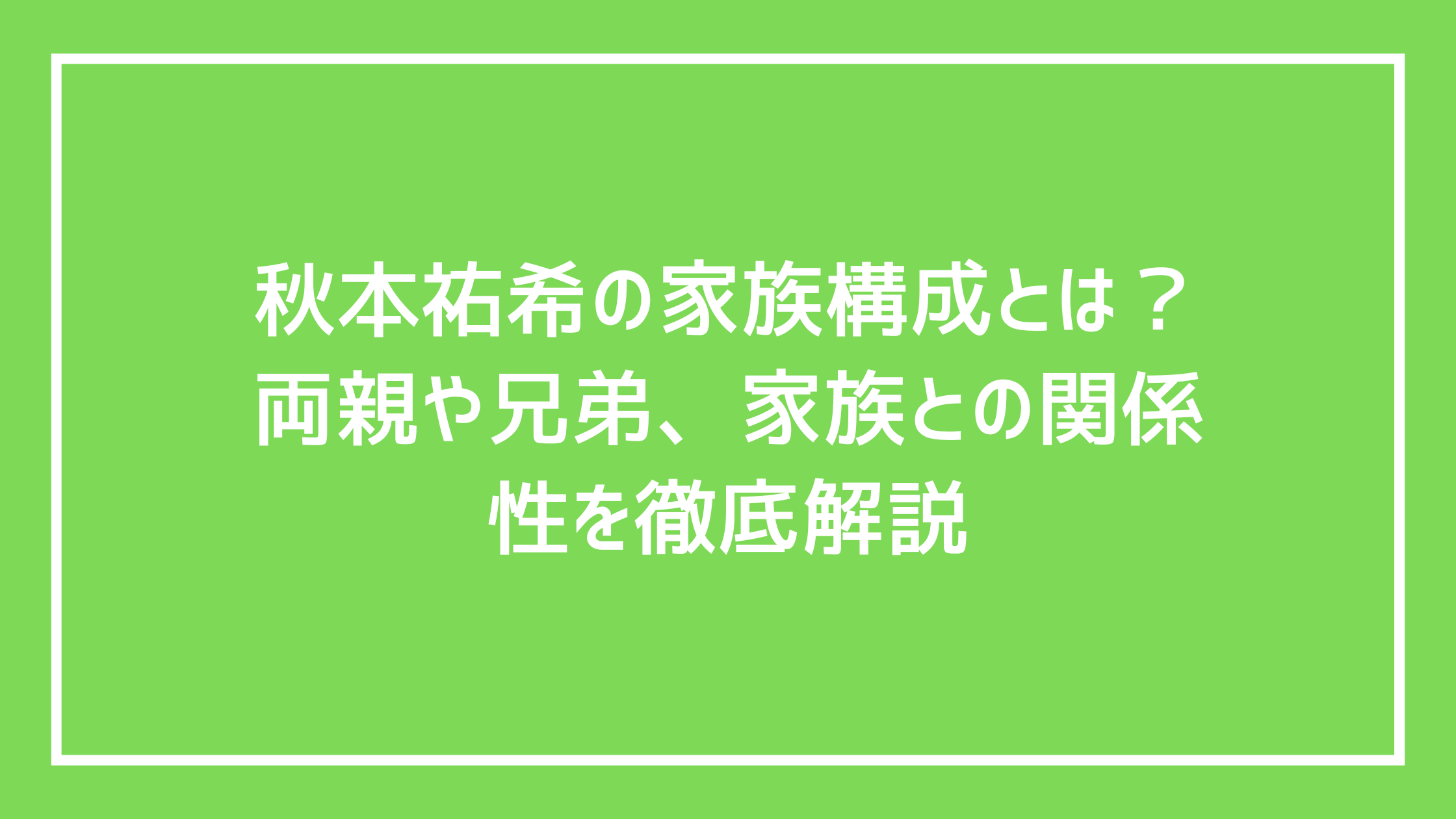 家族を公の場に出さない姿勢は、秋本祐希さんの慎重で誠実な人柄を反映しています。