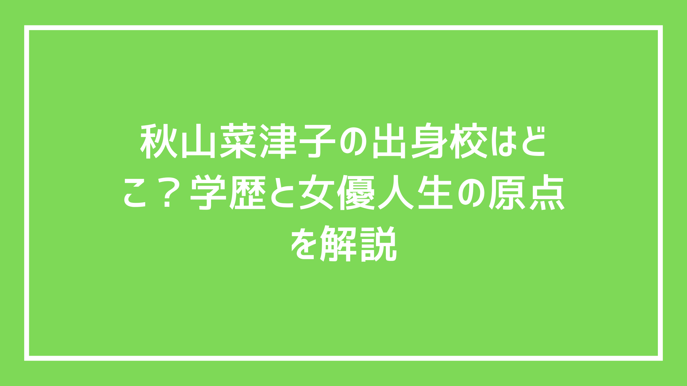秋山菜津子の出身校について、具体的な学校名は公表されていません。