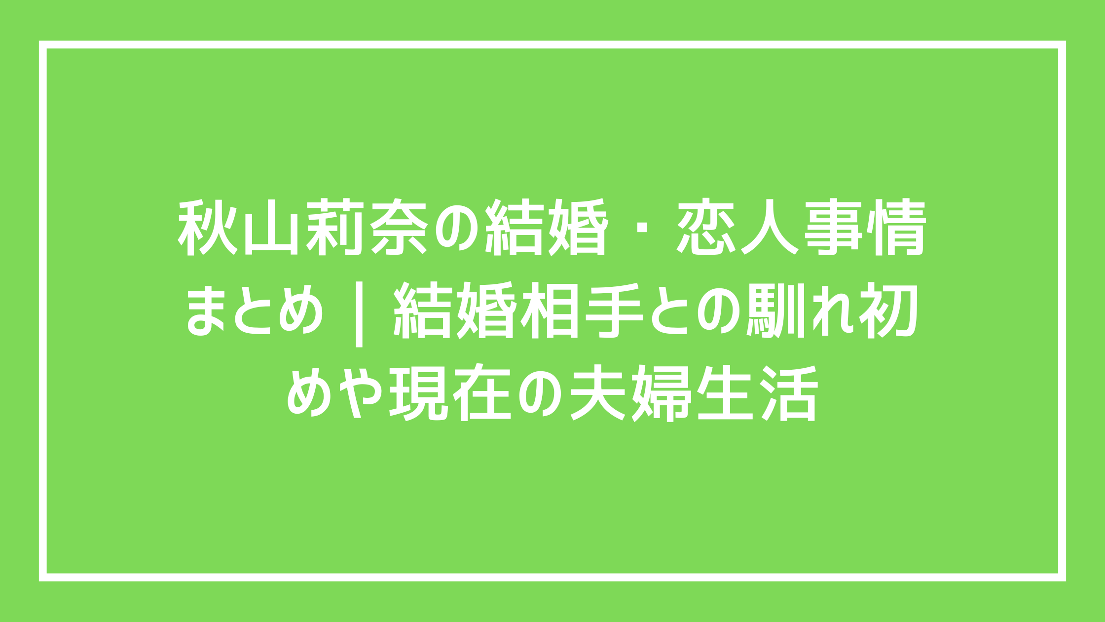 秋山莉奈の結婚・恋人事情まとめ|結婚相手との馴れ初めや現在の夫婦生活