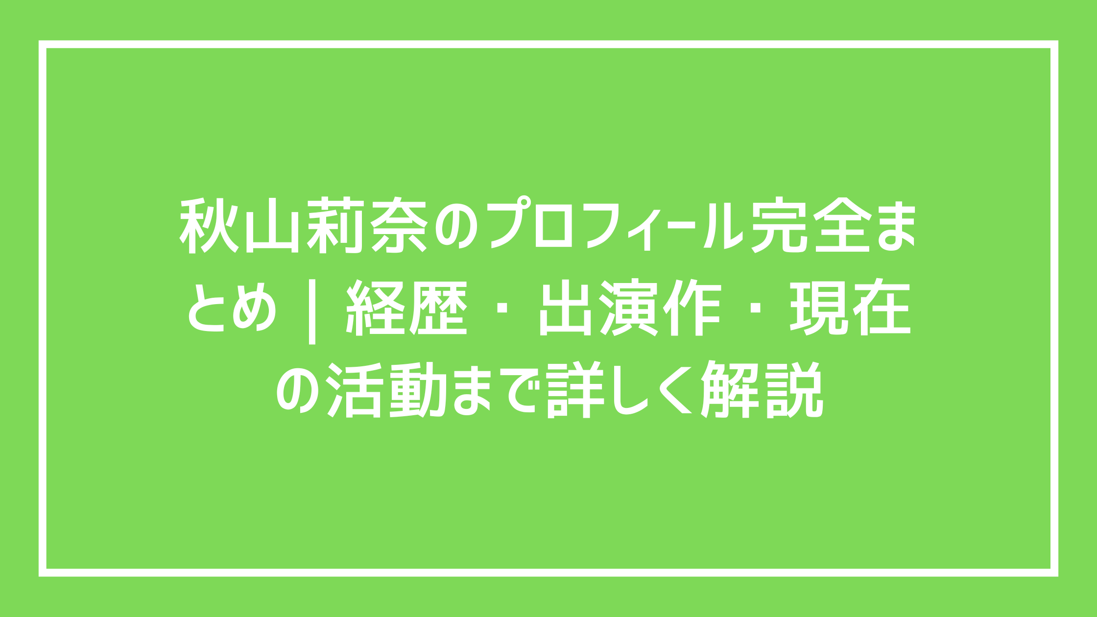 秋山莉奈のプロフィール完全まとめ|経歴・出演作・現在の活動まで詳しく解説