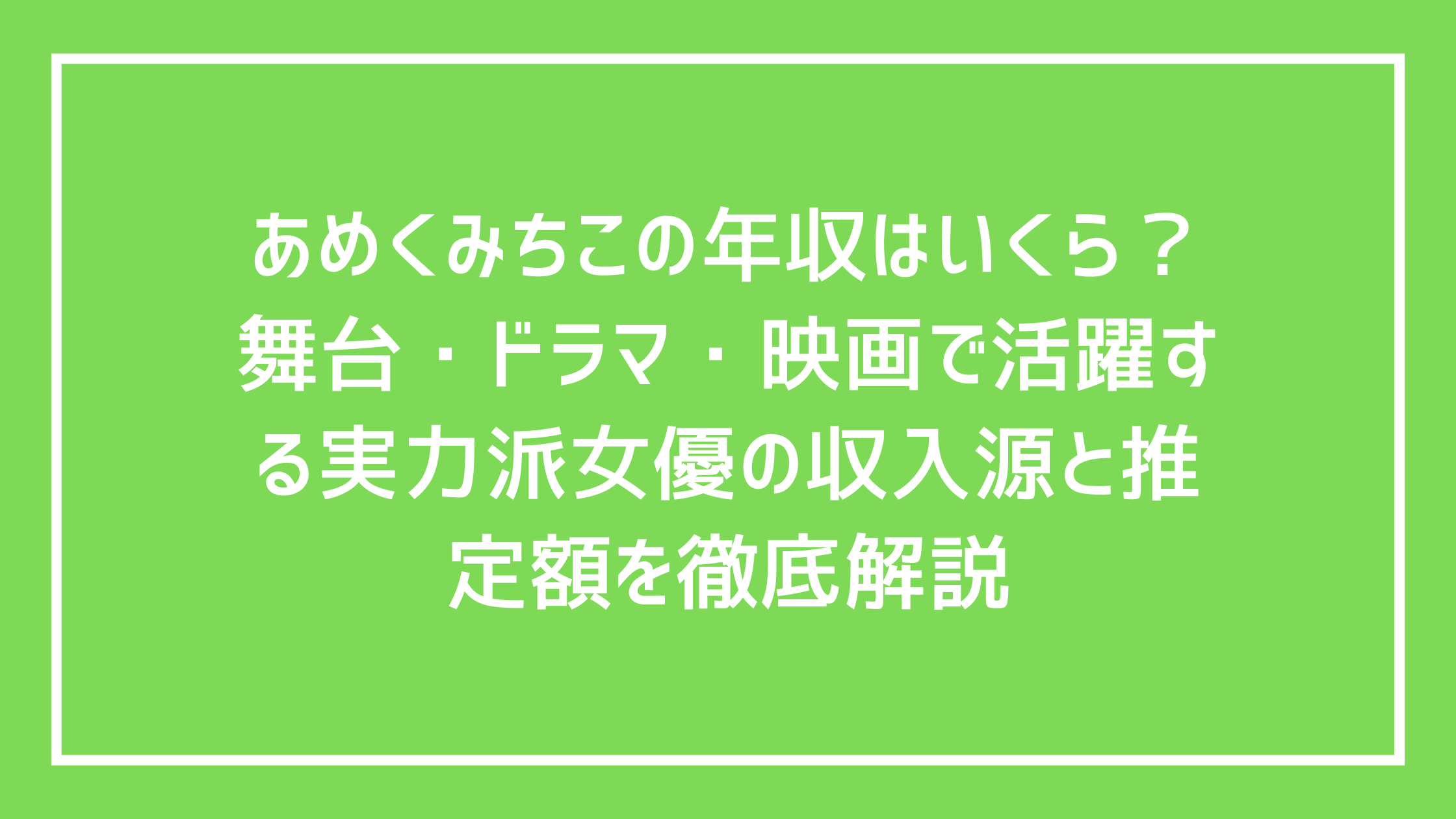 舞台を中心に、テレビドラマや映画でも確かな存在感を放つ実力派女優・あめくみちこさん。「あめくみちこ 年収」というキーワードで検索する人は、派手な露出は少ないものの長年第一線で活動を続けている彼女が、実際どれほどの収入を得ているのかに関心を持っているのではないでしょうか。本記事では、あめくみちこさんのキャリアを振り返りながら、主な収入源と推定年収について詳しく解説します。