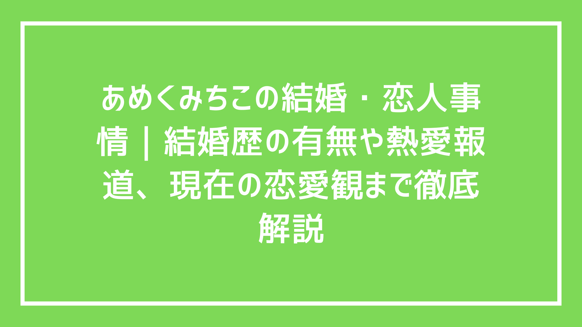 これまでに、あめくみちこさんの熱愛が大きく報じられたことはほとんどありません。週刊誌などで交際がスクープされた事実もなく、恋愛面では非常に慎重な姿勢を保ってきたといえます。