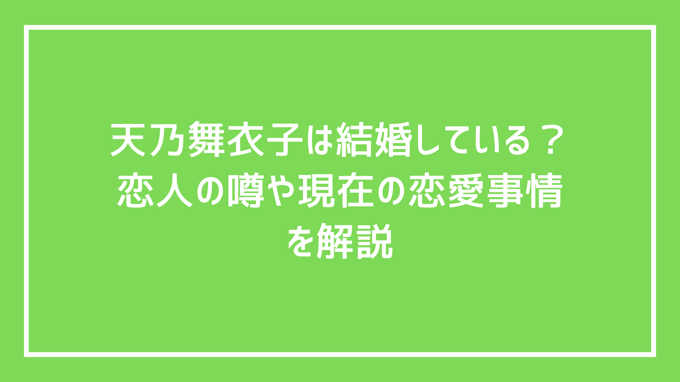 天乃舞衣子は現在結婚しておらず、恋人についても公表されていません。今後の動向に注目が集まります。