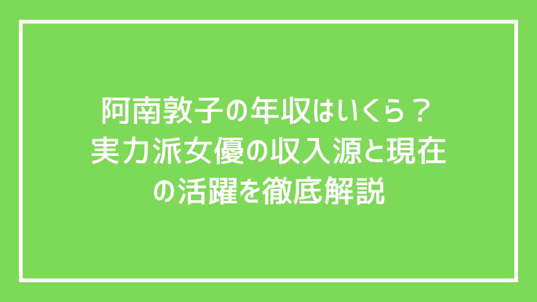 阿南敦子さんの年収は公式には公表されていませんが、これまでの出演本数や活動内容を総合すると、推定年収は600万円〜1200万円前後と考えられます。