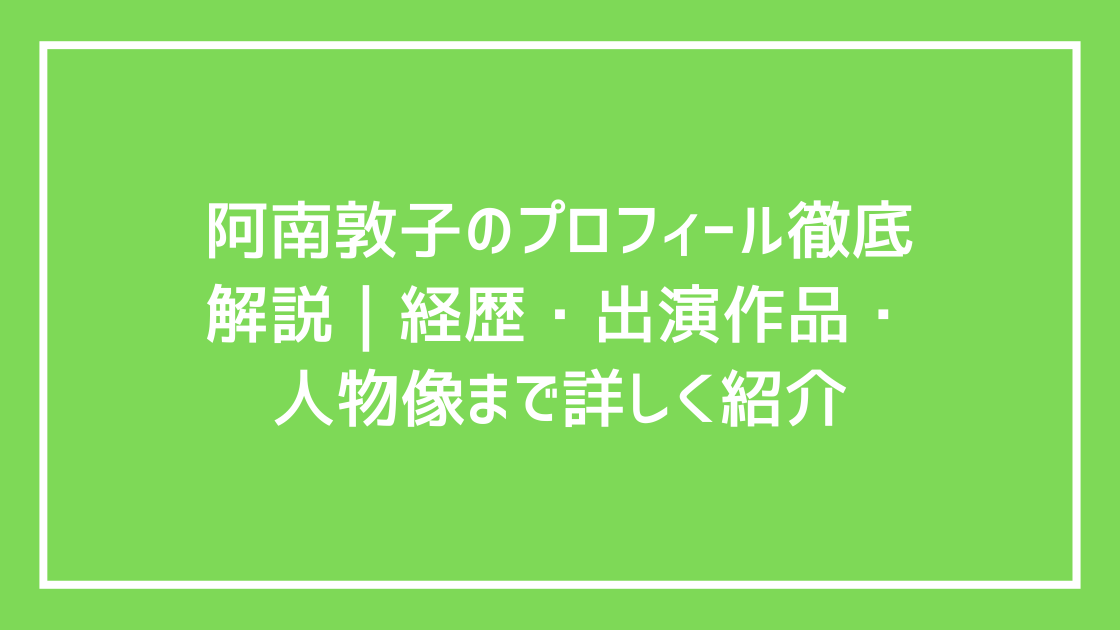 本記事では「阿南敦子 プロフィール」というキーワードをもとに、基本情報から経歴、出演作の傾向、人物像までを網羅的に解説します。