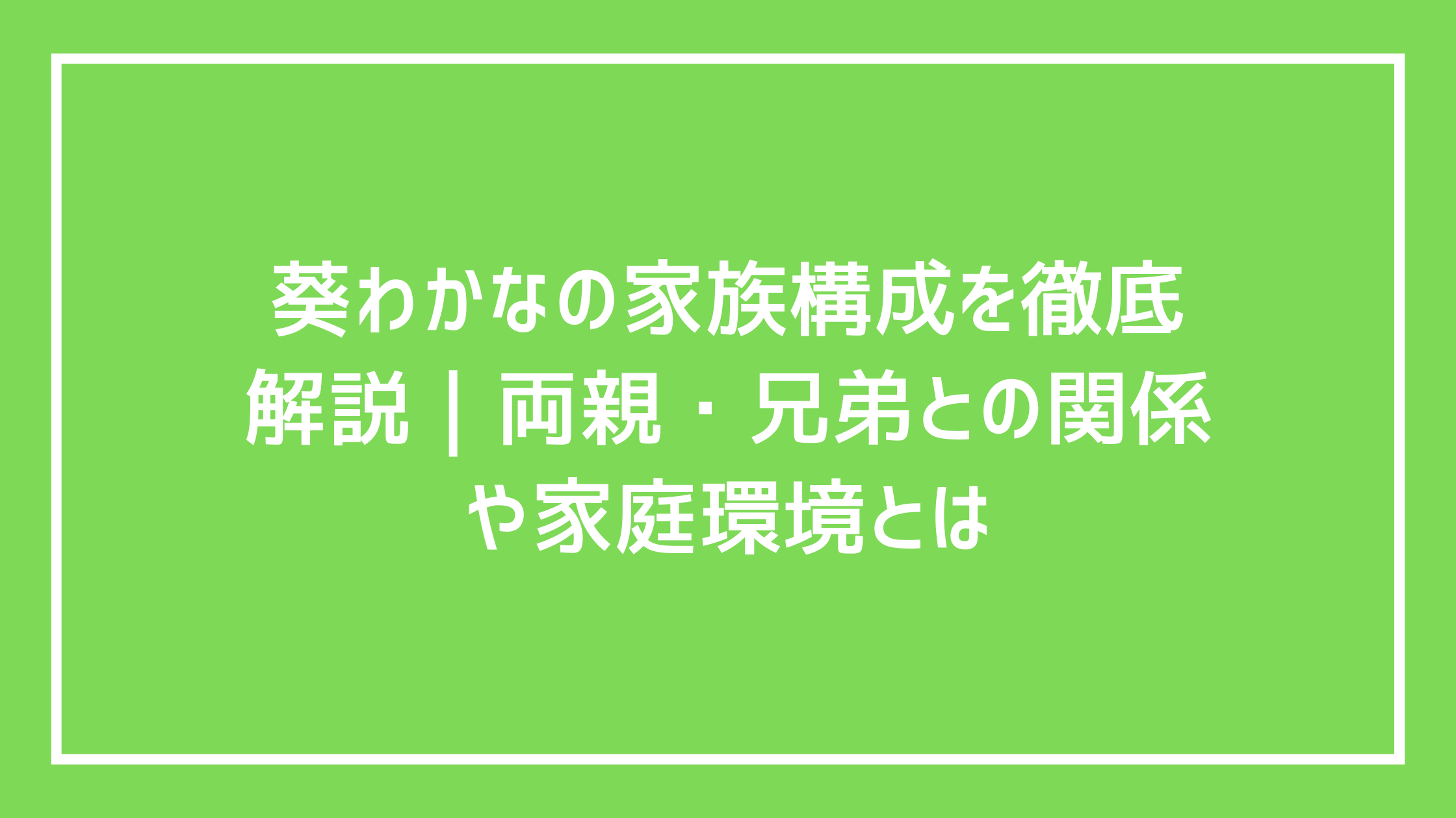 葵わかなさんは、両親と兄弟姉妹を含む家庭で育ったとされています。家族構成の詳細については多くを語っていませんが、家族仲が良く、温かい家庭環境で育ったことがうかがえます。