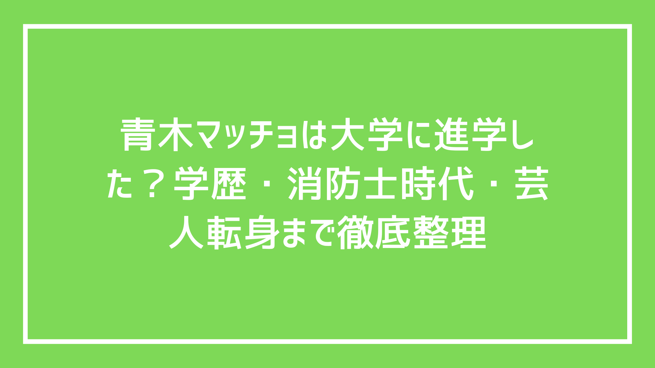 以上より、検索意図「青木マッチョ 大学」に対しては、大学進学の公的根拠は確認できず、むしろ「高校卒業→消防士就職→NSC→芸人」という実務・実績ベースの進路が裏取りできる、という結論になります。