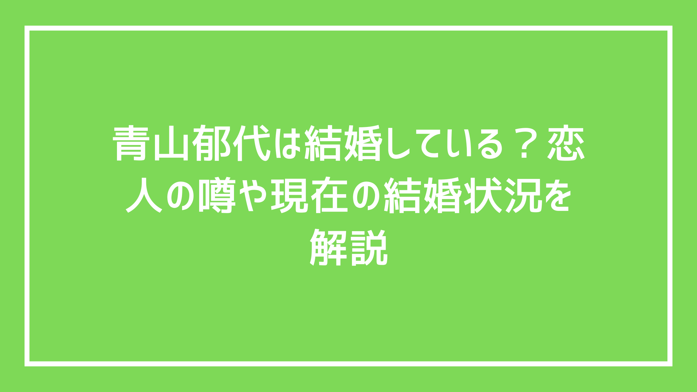 2026年現在、青山郁代さんが結婚しているという公式な発表はありません。結婚報告や配偶者の存在は確認されていない状況です。