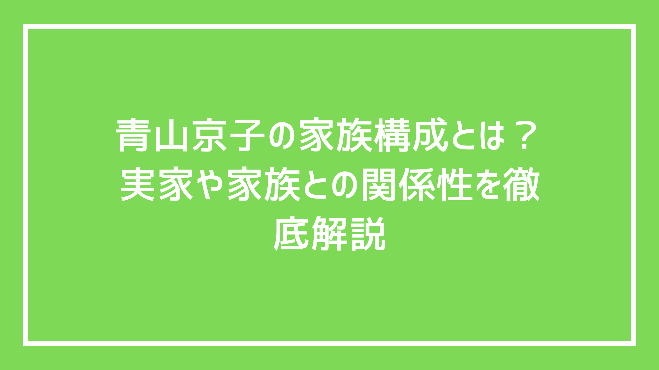 - 青山京子は結婚している?恋人の存在や結婚観を徹底調査