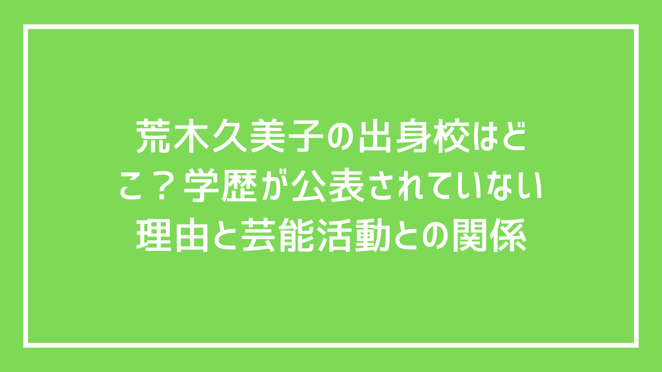 荒木久美子の出身校について検索する人は、「どこの学校を卒業しているのか」「学生時代はどんな進路だったのか」を知りたいと考えています。結論から言うと、荒木久美子の出身校に関する具体的な学校名は公表されていません。本記事では、確認できる学歴情報の範囲と、なぜ出身校が明らかになっていないのかを、芸能活動の特性とあわせて整理します。
