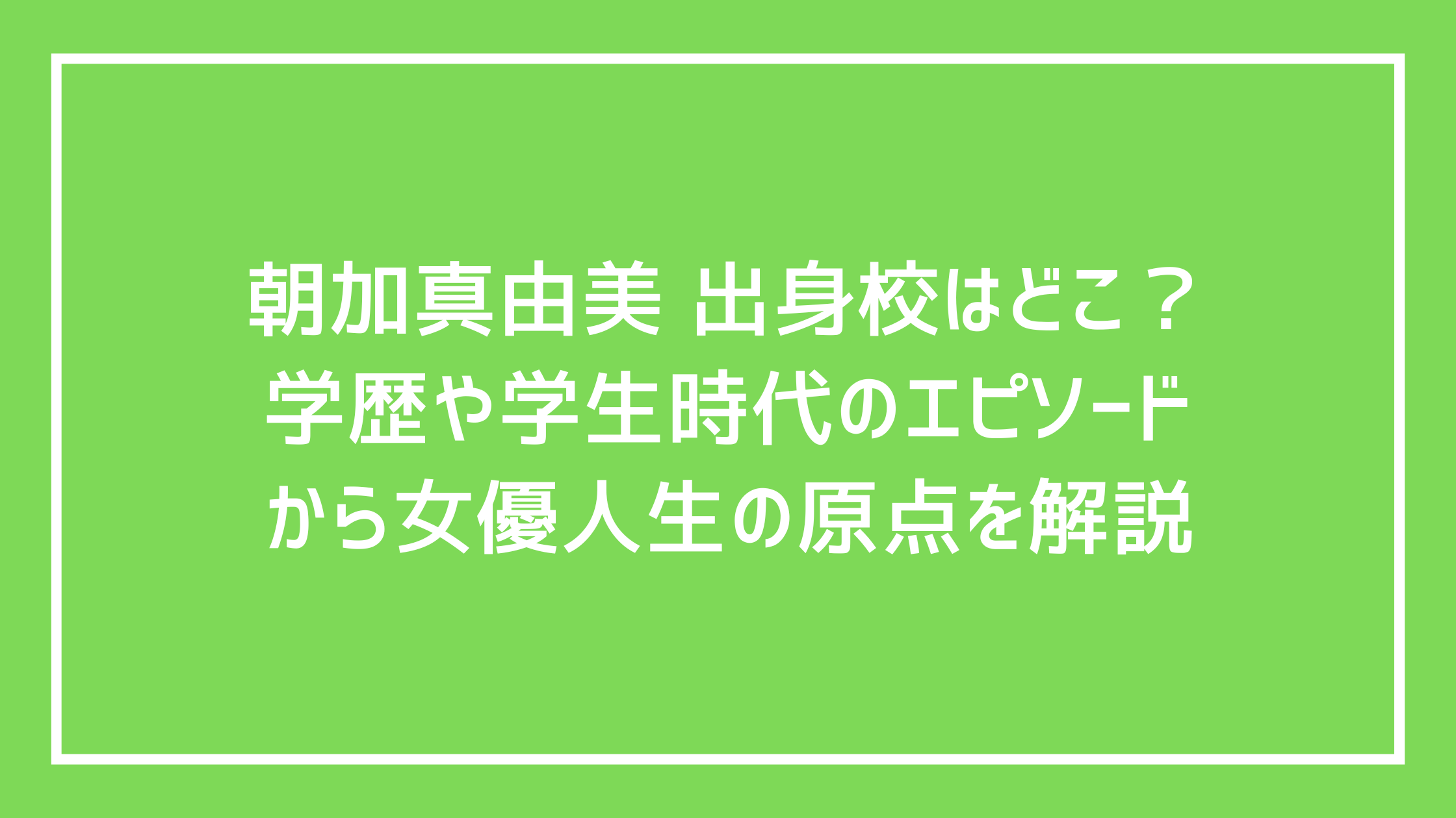 朝加真由美 出身校はどこ?学歴や学生時代のエピソードから女優人生の原点を解説
