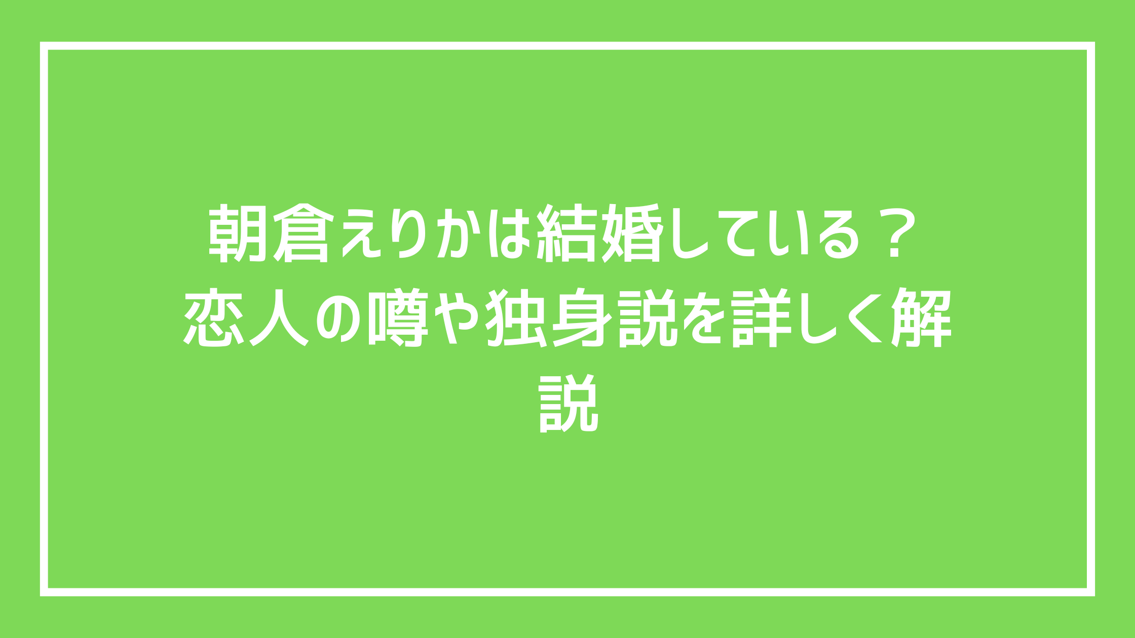 朝倉えりかさんについて、「結婚しているのか」「恋人はいるのか」といった私生活への関心は根強くあります。本記事では「朝倉えりか 結婚/恋人」というキーワードに基づき、公開情報を整理し、事実関係を分かりやすく解説します。