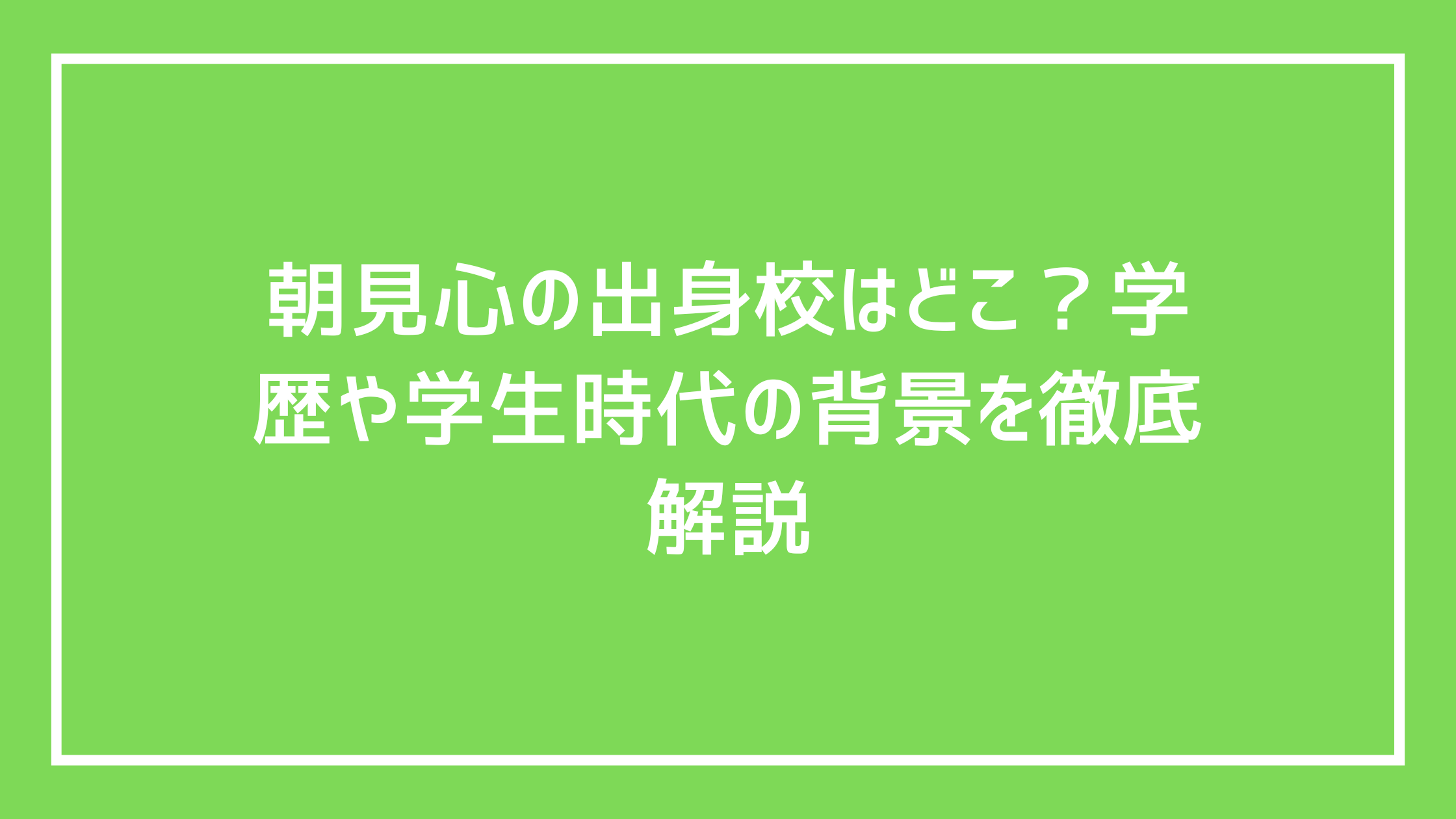 朝見心の出身校はどこ?学歴や学生時代の背景を徹底解説
