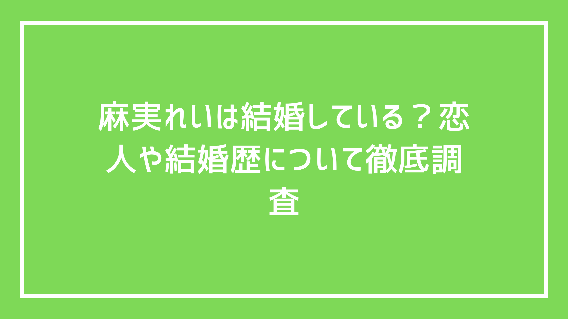2026年現在、麻実れいさんが結婚しているという公式な発表はありません。配偶者や家庭についての情報も確認されていません。