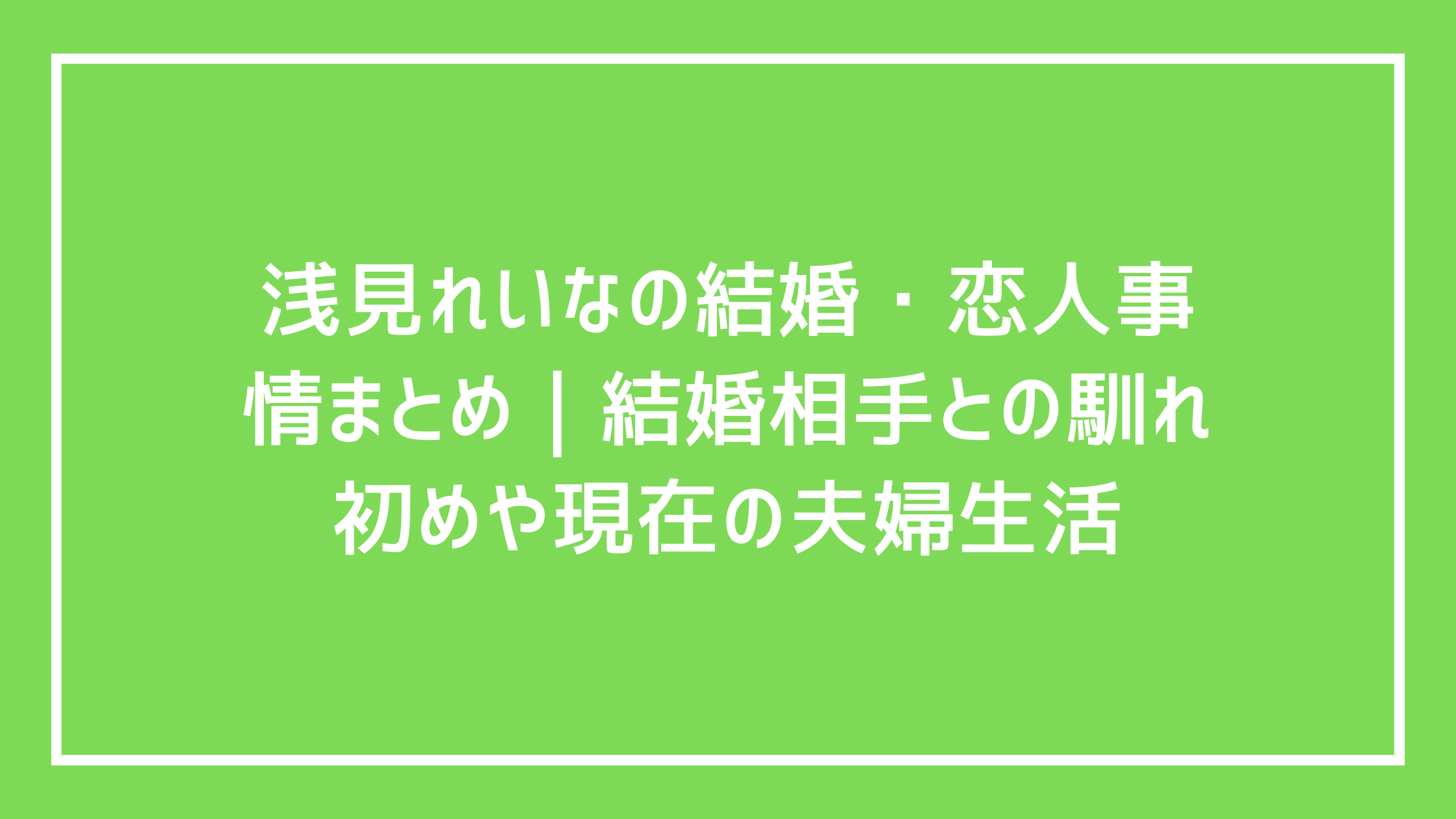 浅見れいなの結婚・恋人事情まとめ|結婚相手との馴れ初めや現在の夫婦生活