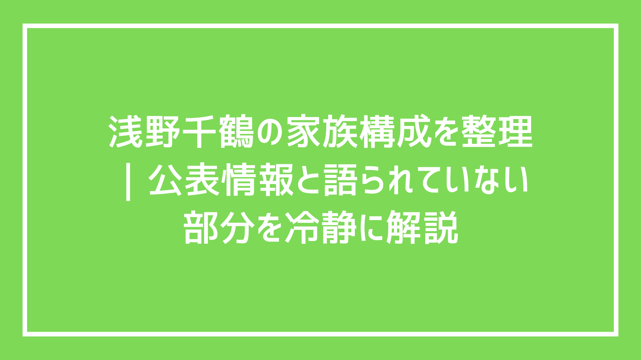 浅野千鶴の家族構成を整理|公表情報と語られていない部分を冷静に解説