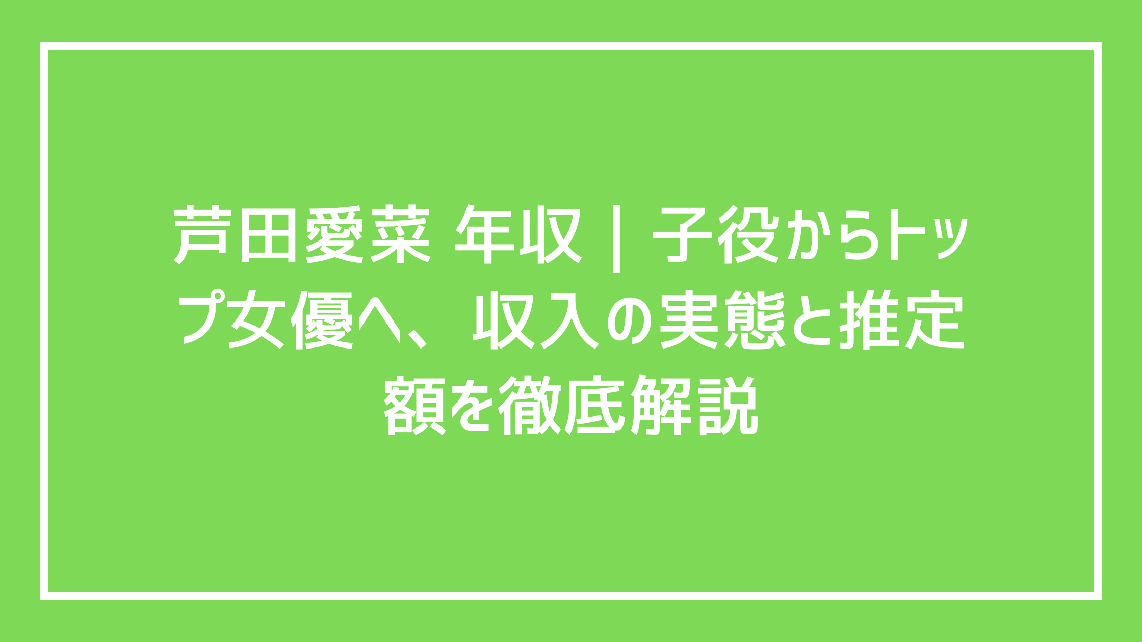 芦田愛菜さんは、子役時代(約10年前)は年収数百万円程度でしたが、10代後半〜20代にかけて大幅に上昇しました。CM契約の長期継続・学業との両立・好感度の高さなどが要因です。