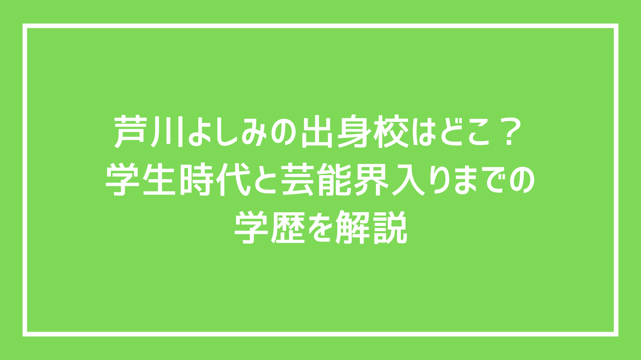 芦川よしみさんの出身校について、具体的な学校名は公表されていません。中学・高校ともに一般的な学校に通っていたと考えられています。