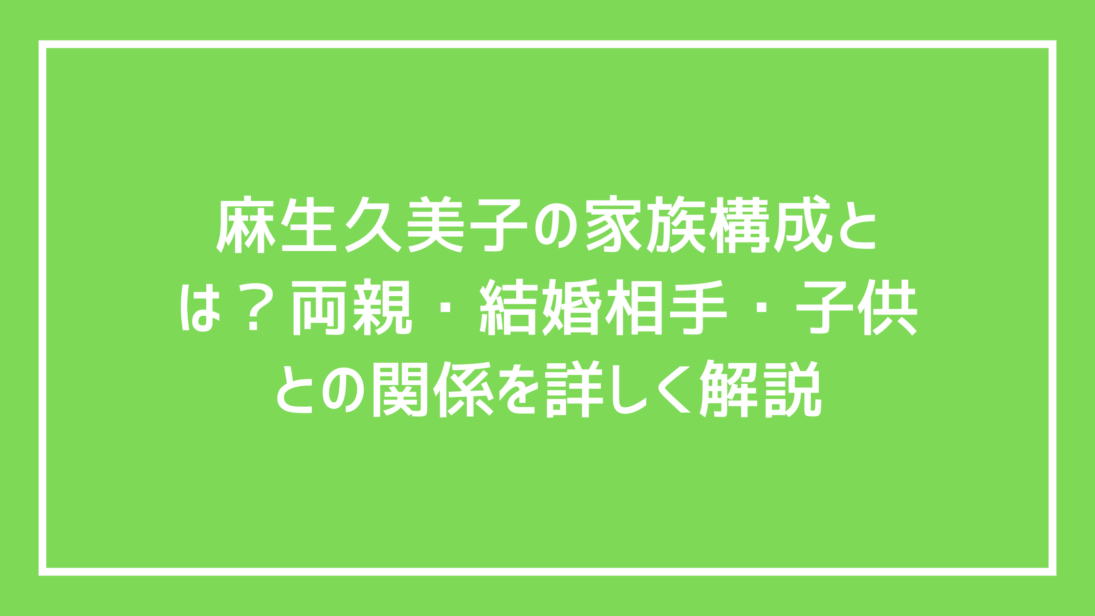 実力派女優として長年活躍を続けている麻生久美子さん。プライベートをあまり語らないことで知られていますが、「家族構成」や「結婚生活」について関心を持つ人は多いようです。本記事では「麻生久美子 家族」をテーマに、両親との関係、結婚相手、子供について詳しく解説します。