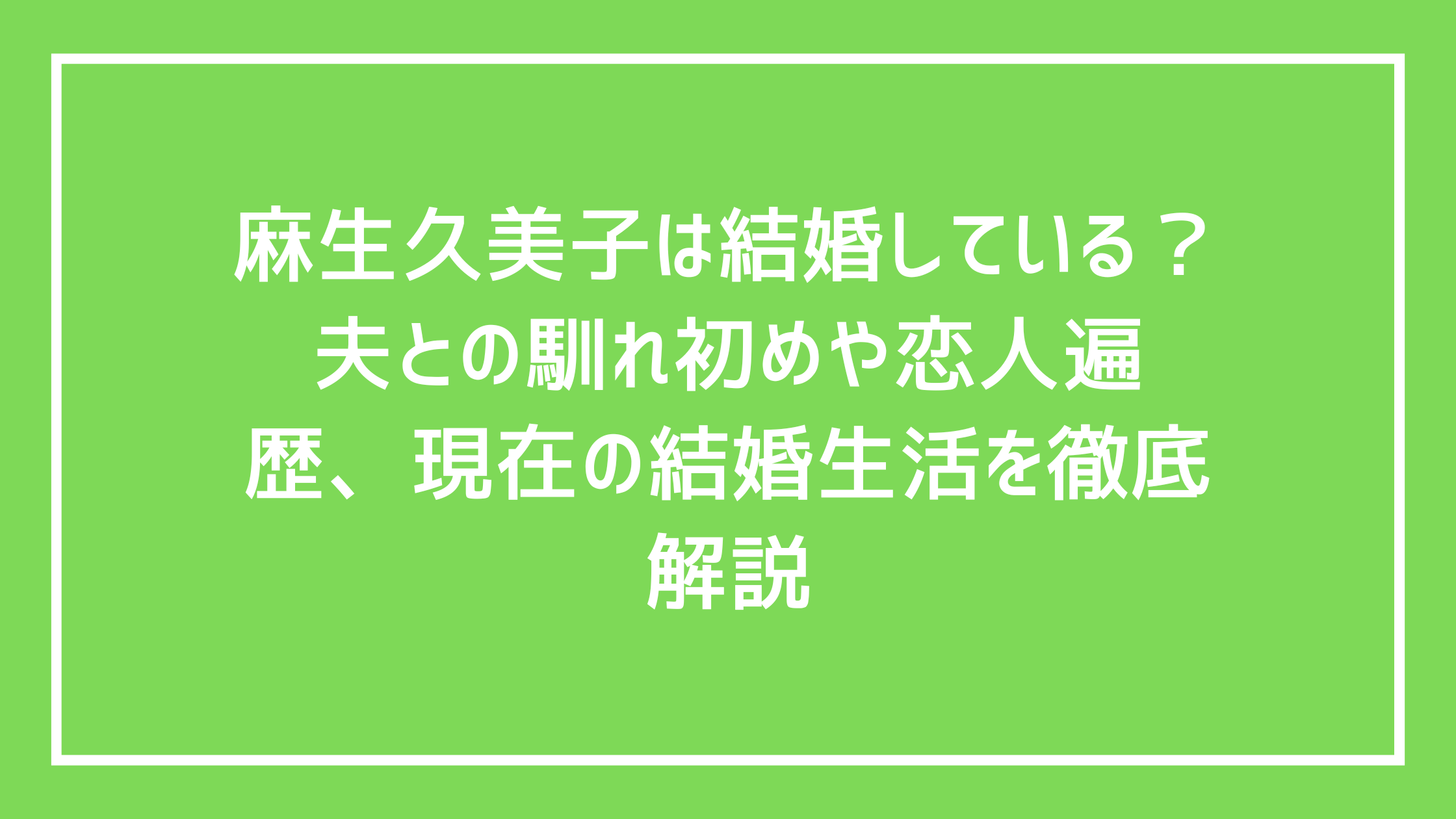 麻生久美子は現在も結婚していますか?
