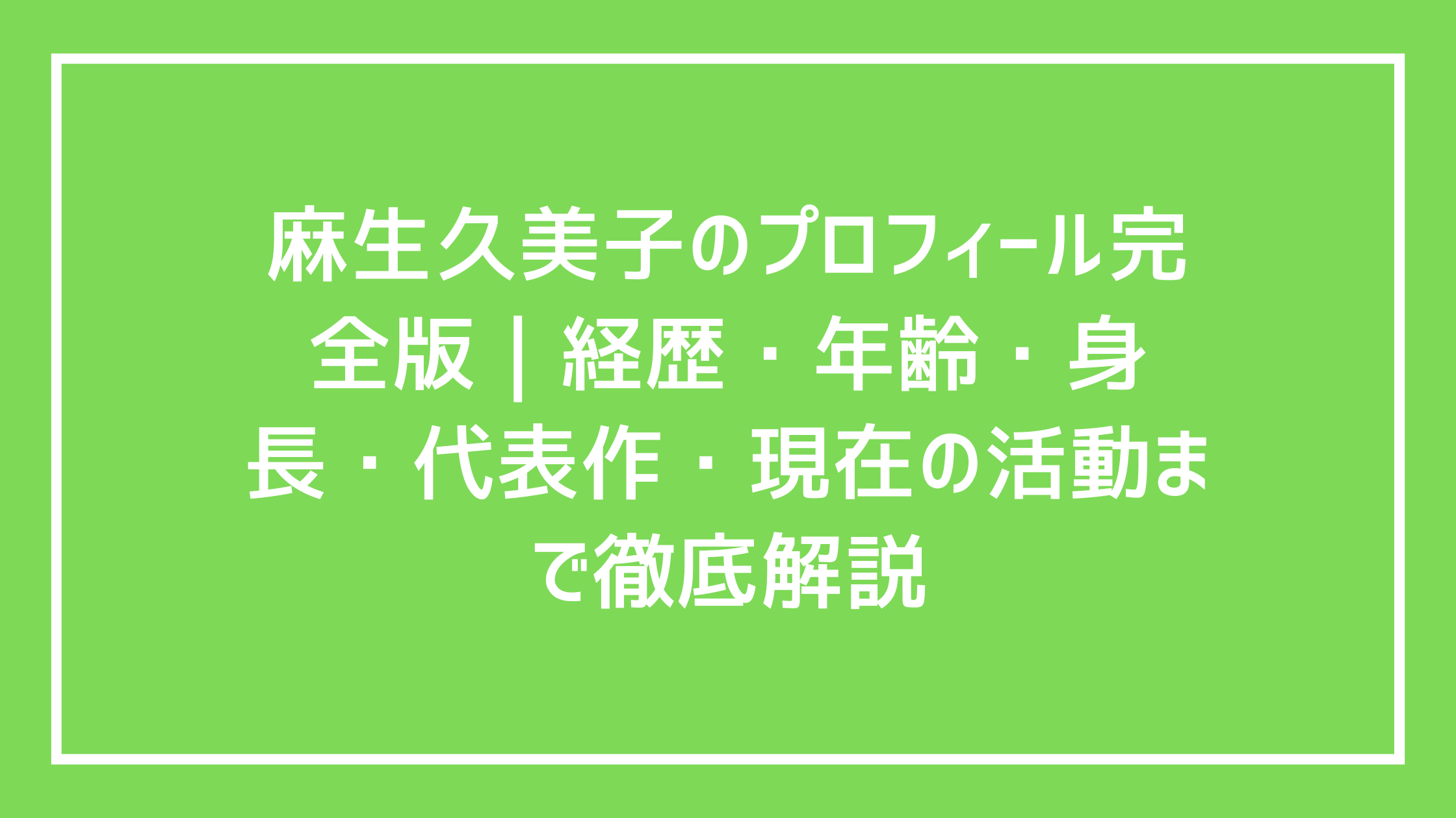 - 麻生久美子の出身校はどこ?中学・高校時代と芸能界入りまでを詳しく解説
