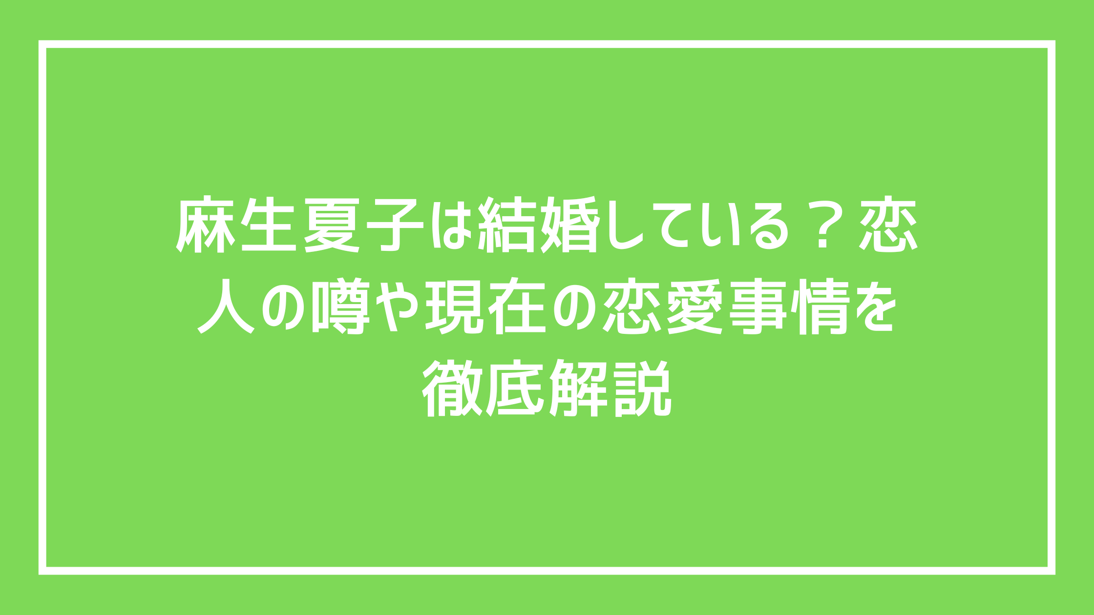 麻生夏子は結婚している?恋人の噂や現在の恋愛事情を徹底解説