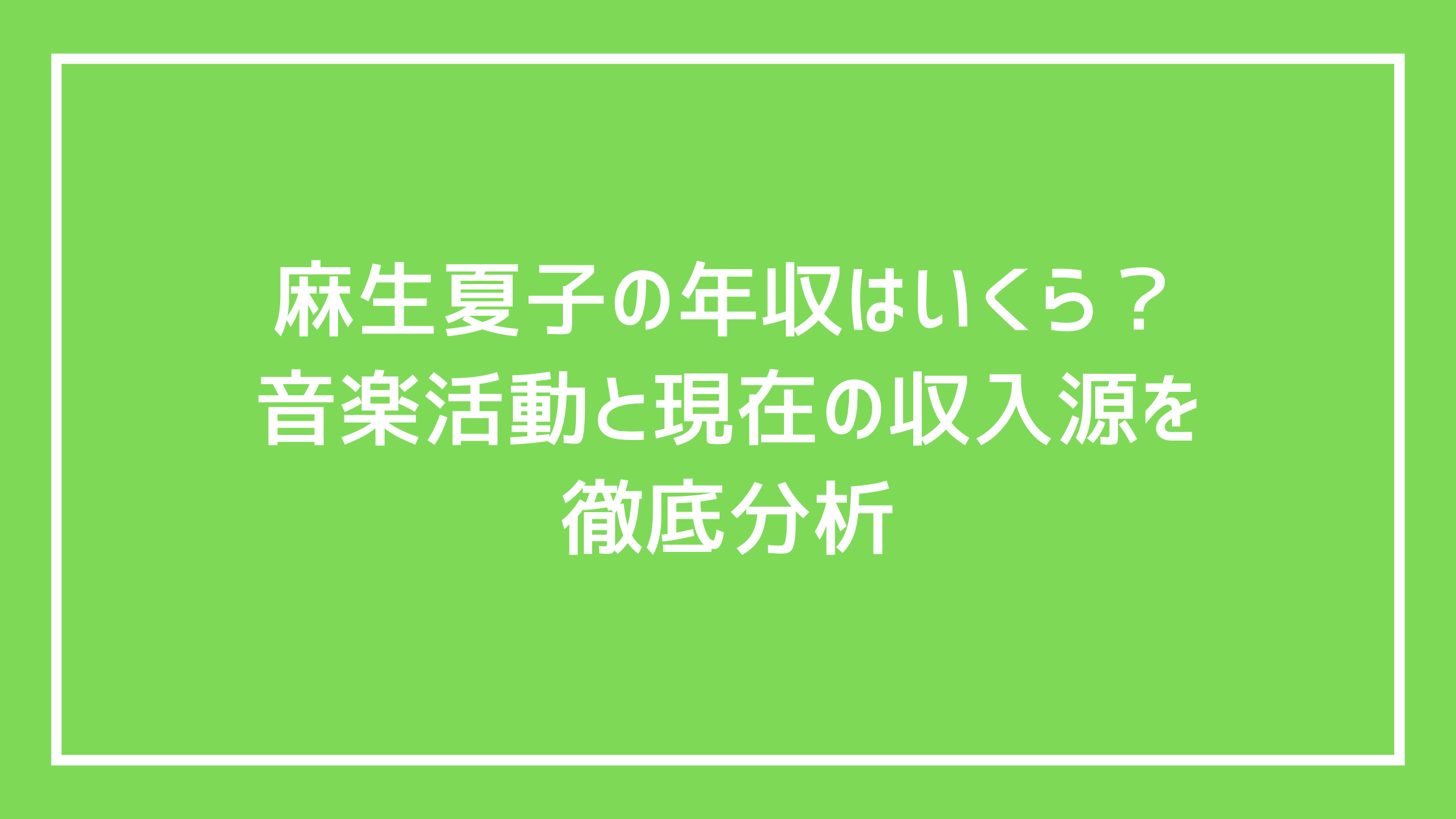 麻生夏子さんの年収は公表されていませんが、音楽活動や関連する仕事の内容から、数百万円前後と推測されることが多いです。活動の幅や時期によって変動する点が特徴です。
