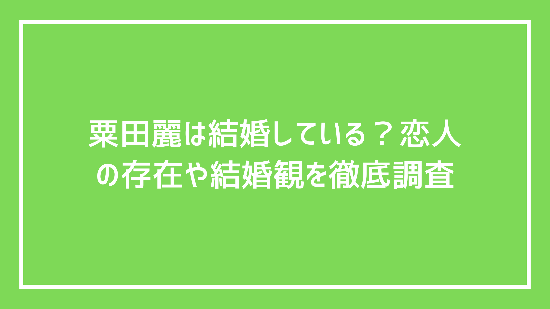 粟田麗は結婚している?恋人の存在や結婚観を徹底調査