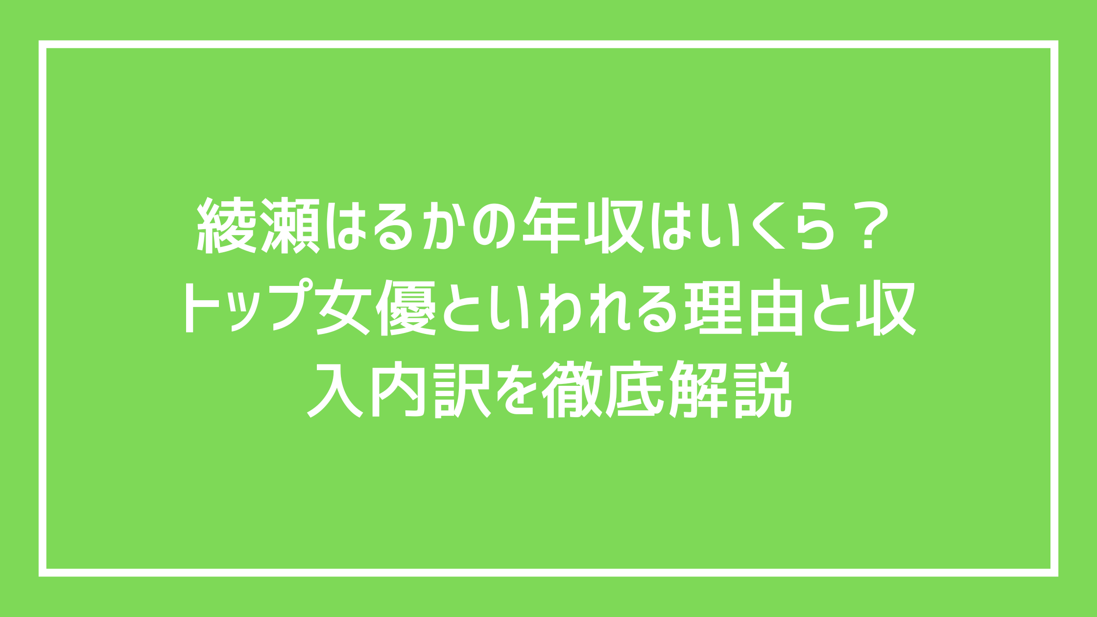 本記事では「綾瀬はるか 年収」という検索キーワードに基づき、推定年収の規模、収入源の内訳、なぜここまで高水準を維持できているのかという点まで、結論から理由、深掘り、FAQの流れで詳しく解説します。