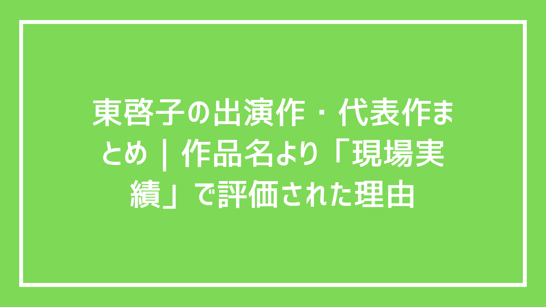 - 東啓子のプロフィール徹底解説|経歴・活動ジャンル・人物像を整理