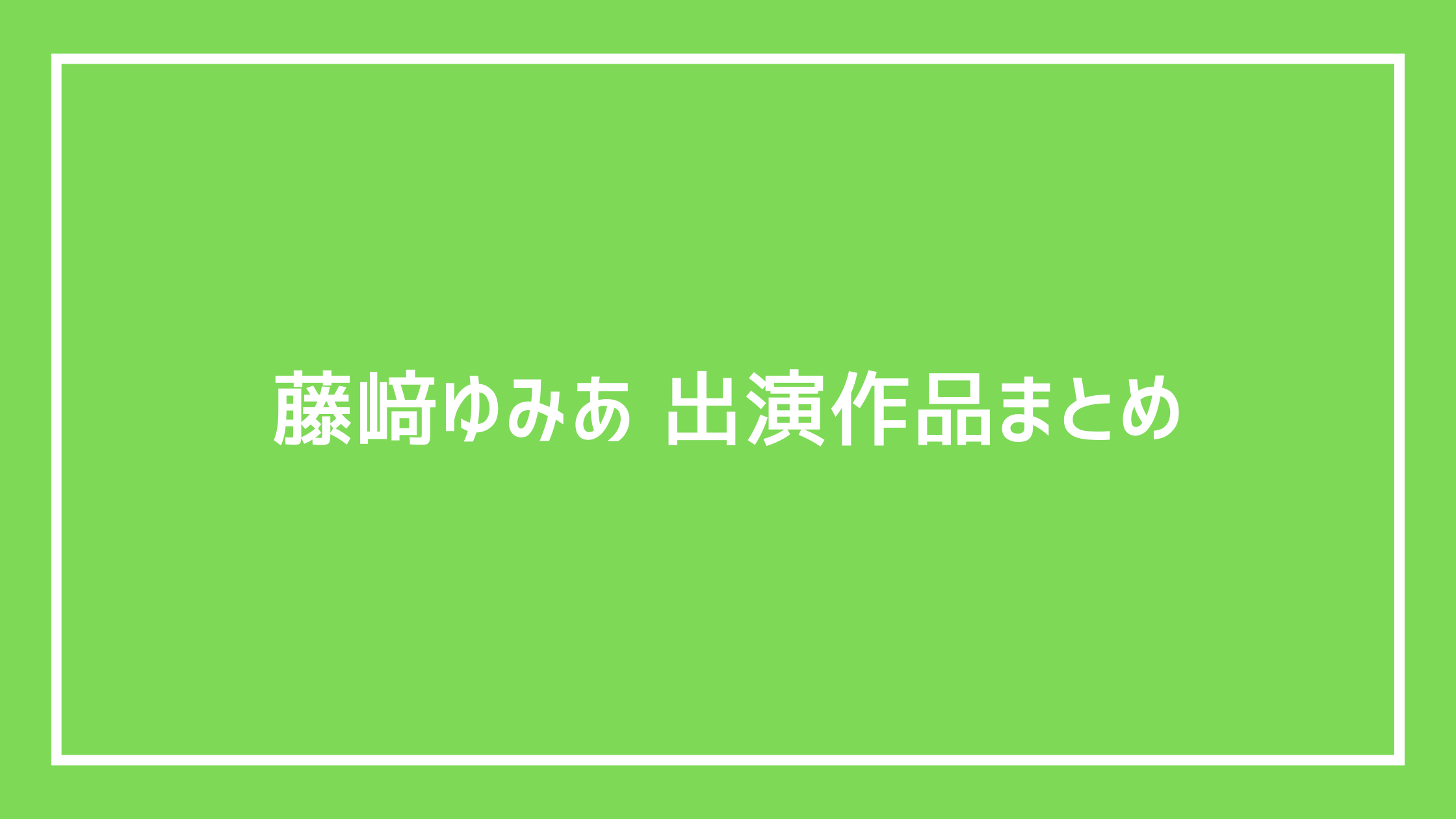 本記事では、藤﨑ゆみあの出演作品をテレビドラマ/配信ドラマ/映画/配信映画/CM/MV/その他活動に分類し、作品名・放送(公開)時期・役名・篇名まで含めて網羅的に整理する。確認できる情報のみを掲載し、断定できないものは無理に含めていない。