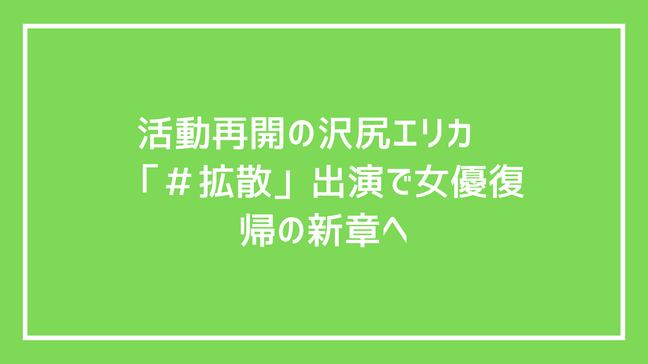 沢尻エリカが「#拡散」出演を通じて女優復帰の第一歩を踏み出しました。過去の出来事を経て、舞台に続き映像作品というチャレンジを選んだことには、覚悟と期待の両方が込められていると見えます。