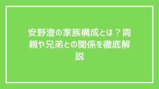 安野澄の家族構成とは?両親や兄弟との関係を徹底解説